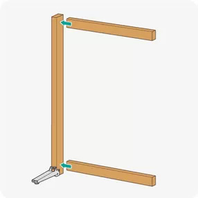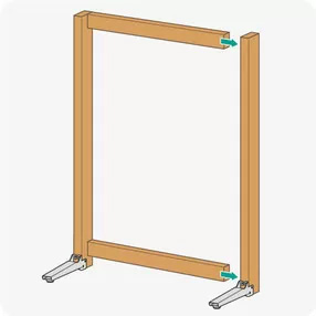 2x4材に、2x4を立てる脚を取り付けます。縦柱の長さは、1820mm以内 にしてください。