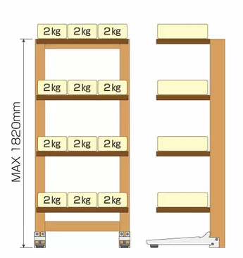 複数段での使用の場合は、棚全体で24kg・1段あたり6kgを目安に使用してください。