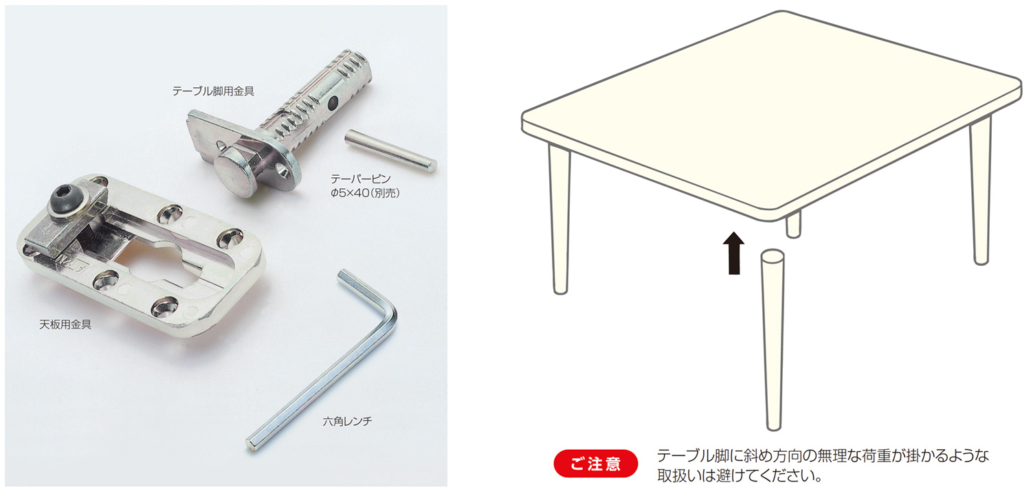 ●テーブル脚と天板の組立て作業が簡単にできます。