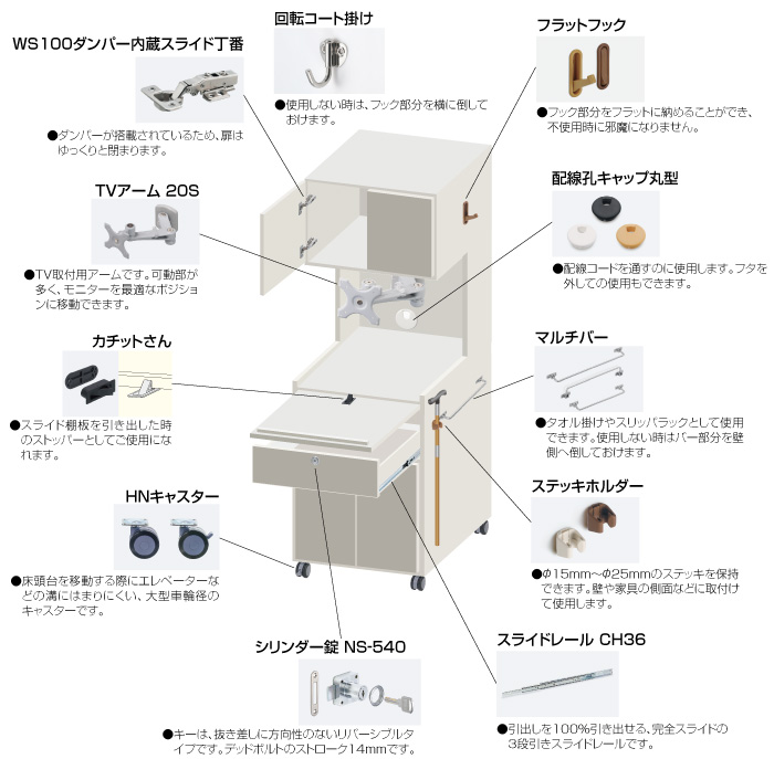 床頭台用金具