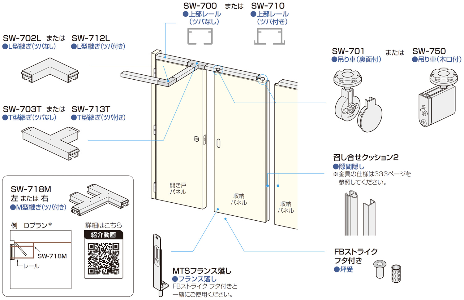 ●上部吊り車は裏面付と木口付の2種類を用意していますので、用途に合わせた自由度の高いプランニングができます。