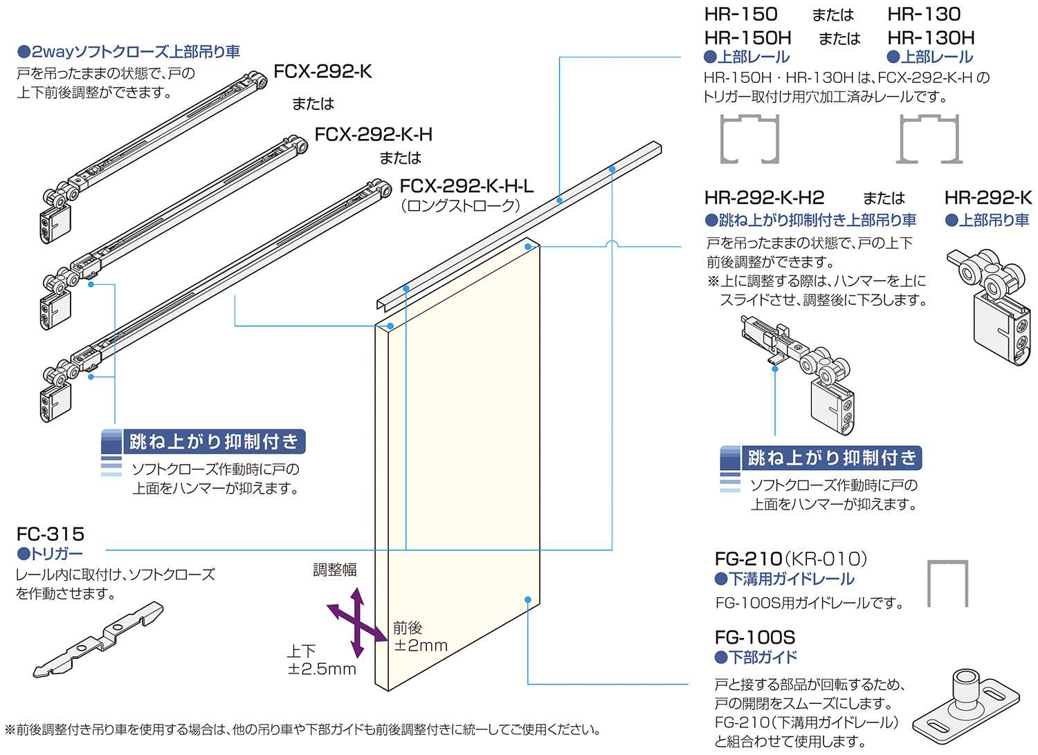●品番にHがついている吊り車には、戸の跳ね上がり抑制機能を搭載しています。