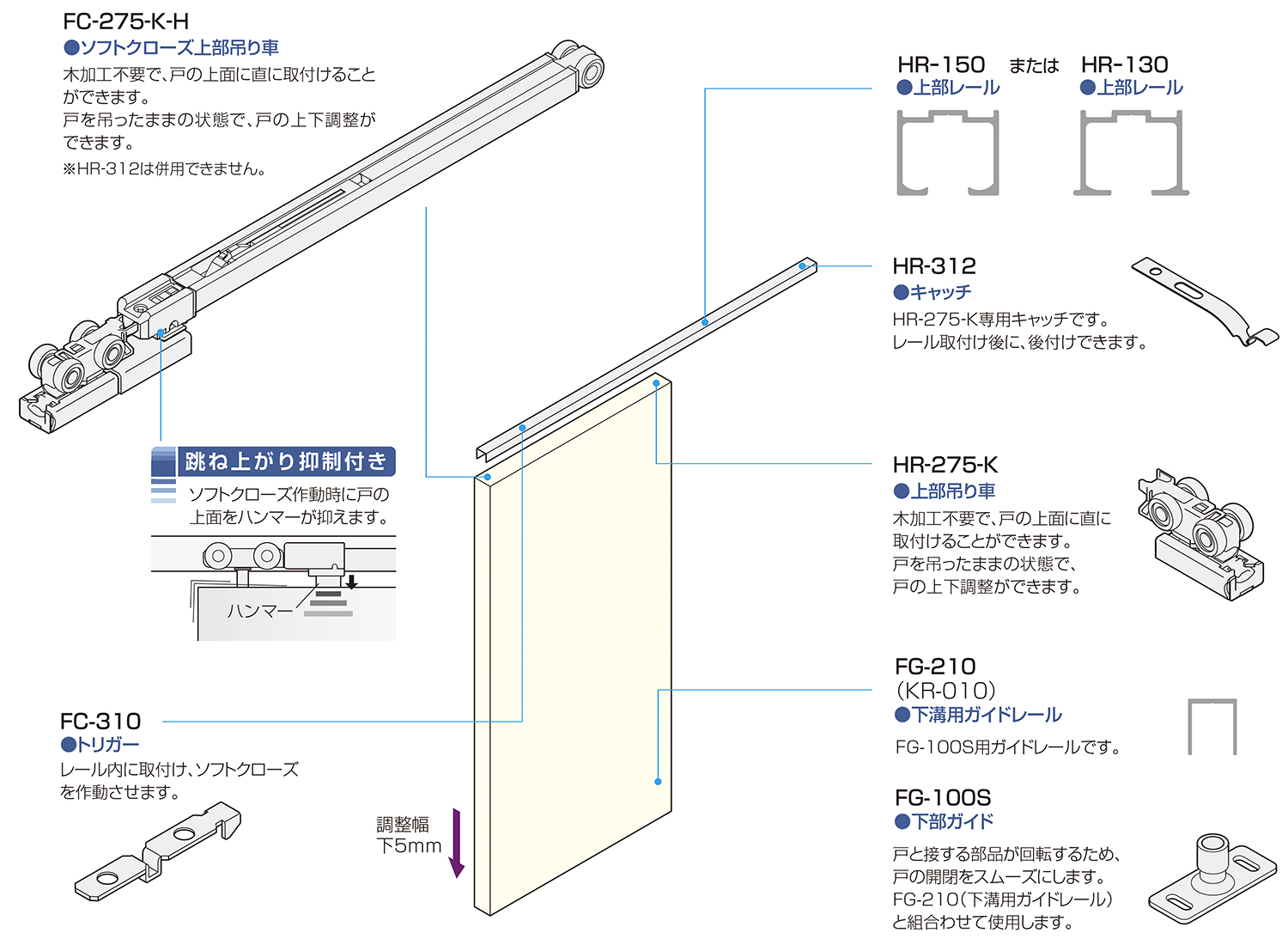●戸が閉まる約50mm手前で、跳ね上がり抑制付きソフトクローズが作動します。