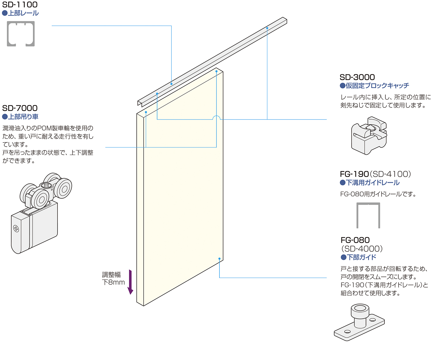 上吊式引戸金具用下ガイド FG-080 (旧品名:SD-4000)