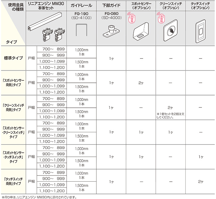 ●住宅屋内用の自動ドアシステム金具です。リニアモータ式のため、静かで安全です。